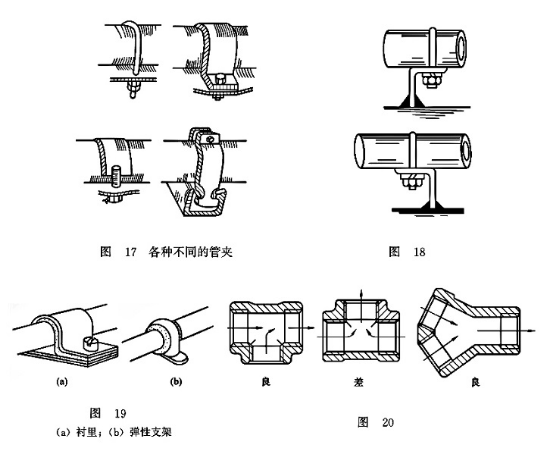 (4)采用管夾和彈性支架等防止振動,如圖17~圖19所示。